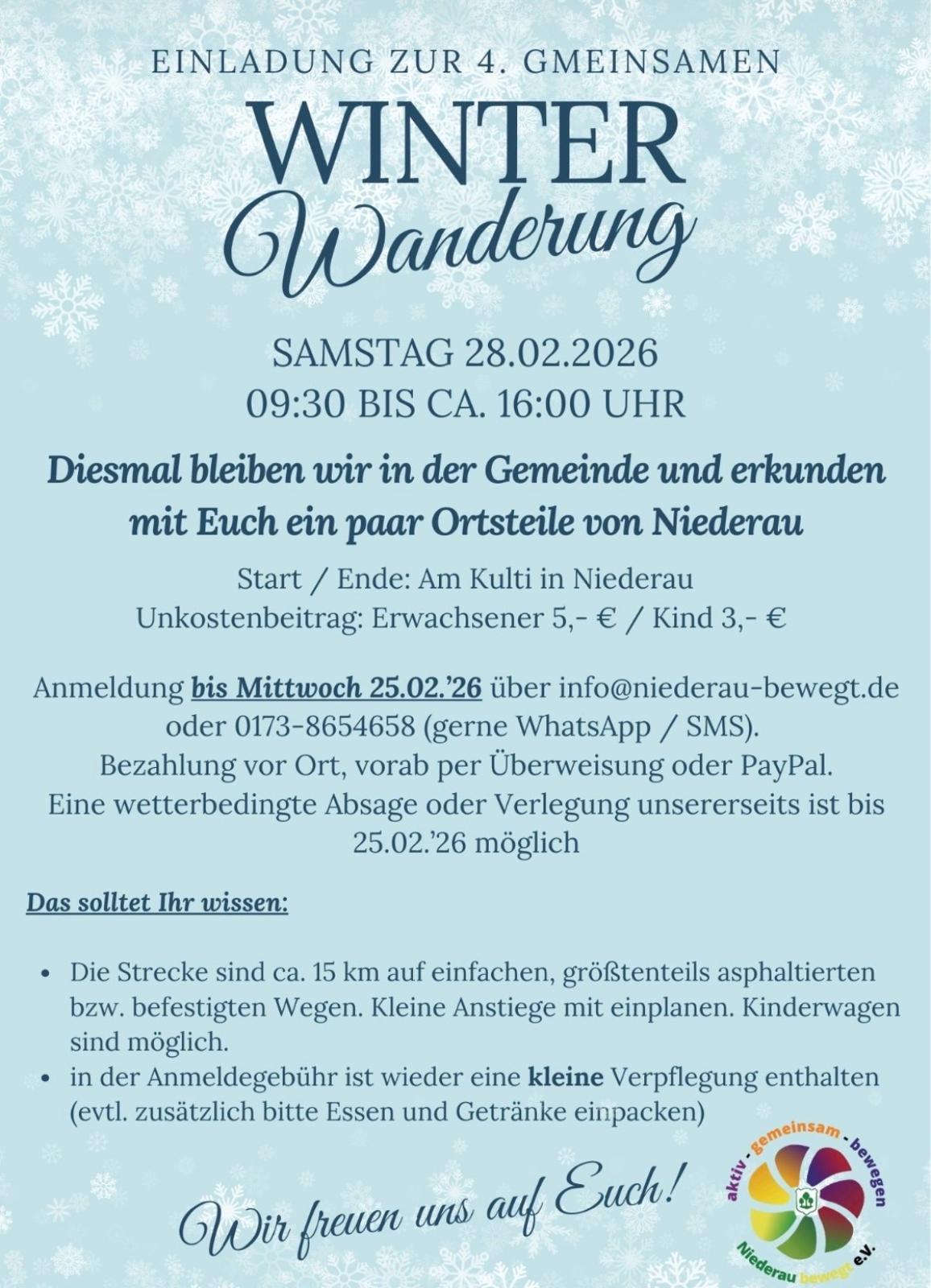 Egal ob alteingesessener Niederauer oder erst kürzlich zugezogener Großstädter – wir möchten alle Einwohner unseres schönen Dorfes einladen, gemeinsam unser Dorfleben aktiv zu gestalten.
