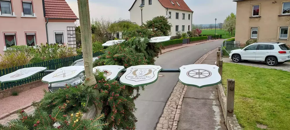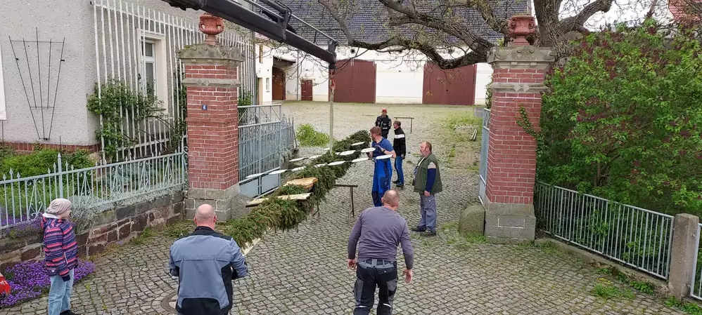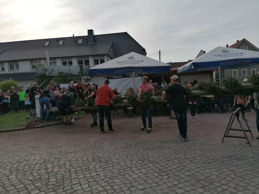Fleißige Helfer wanden die Ranke des Maibaums und kümmerten sich um alles, was zu einem Maibaum eben so dazugehört. Wieder andere Vereinsmitglieder organisierten viel große und kleine Attraktionen. Dazu gehörte ein Kindermaibaum, eine Hüpfburg, Kinderschminken und und und.